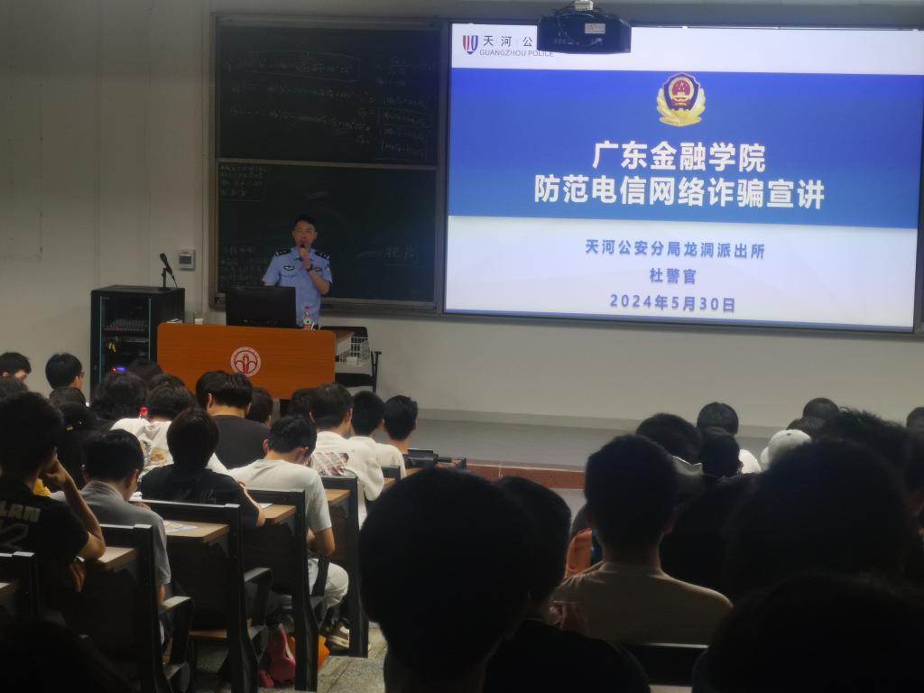 随着网络技术的飞速发展,诈骗手段层出不穷,校园安全面临着前所未有的挑战,为增强学生防范意识,提高学生自我保护能力。5月30日晚,taptap点点官方网站联合天河公安分局龙洞派出所,在6栋教学楼401举办了“防范电信网络诈骗”宣讲会。